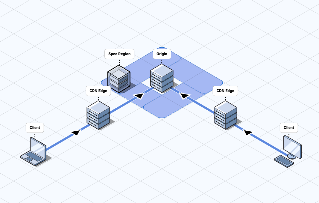 Spec regions allow bidirectional traffic scanning along the normal network routing used to send requests to the origin and optimize connection handling to achieve the lowest possible network round-trip time.
